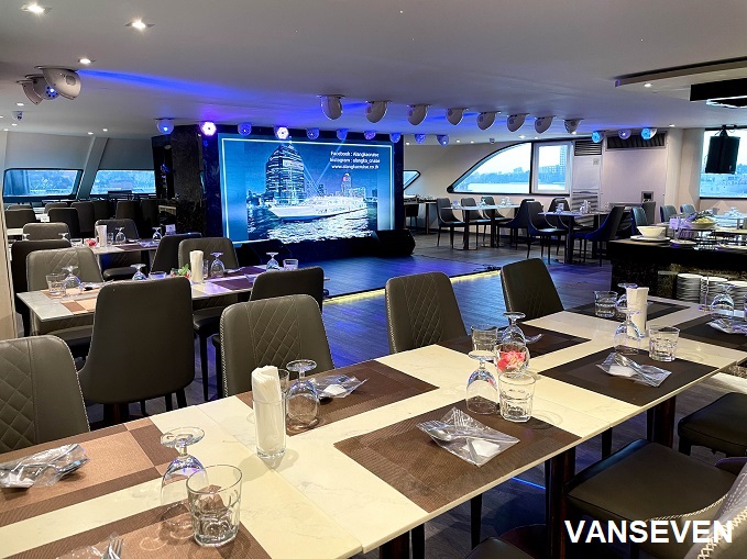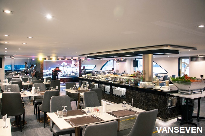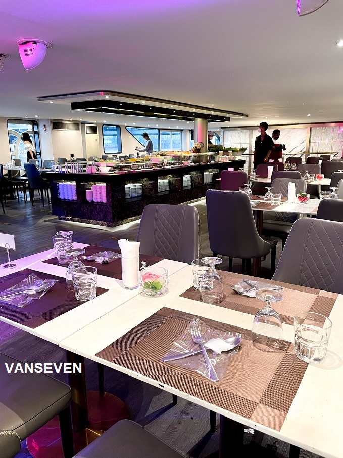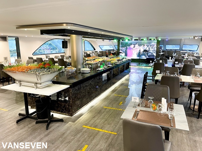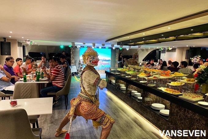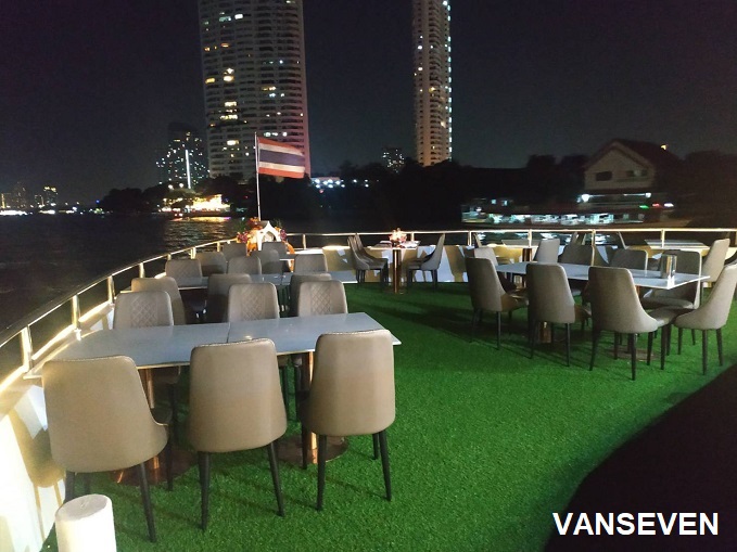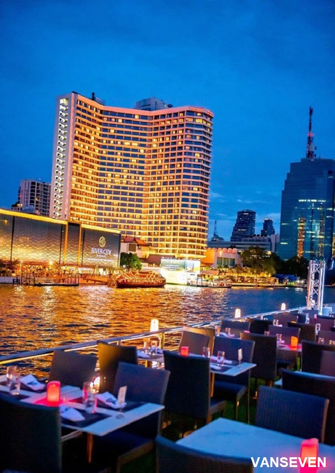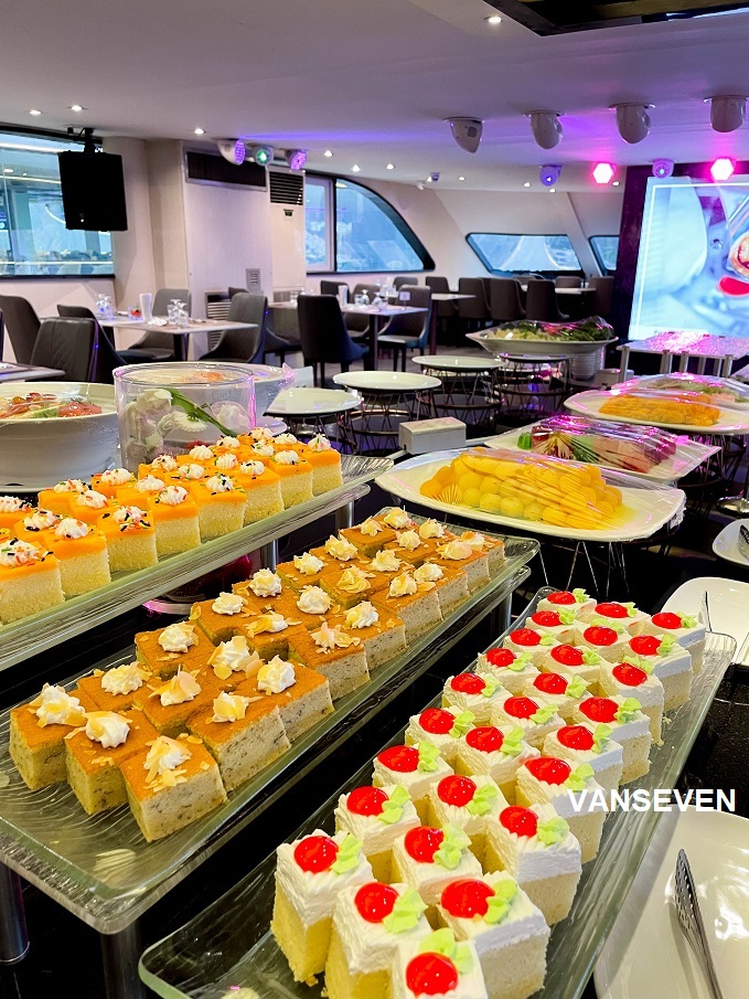 17.15 น. เรือออกจากท่าไอคอนสยาม เชิญท่านอิ่มอร่อยกับอาหารแบบบุฟเฟต์นานาชาติรสเลิศโดยเชฟฝีมือเยี่ยม เคล้าคลอด้วยเสียงเพลงอันไพเราะ จากวงดนตรีบรรเลงขับกล่อมระหว่างรับประทานอาหาร