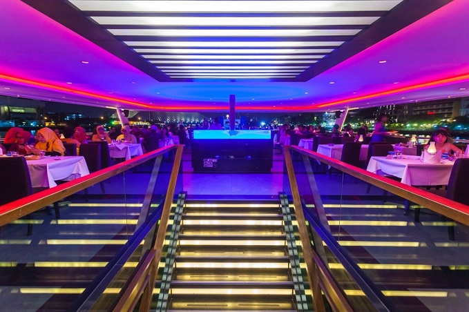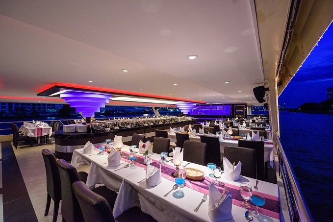 20.00 น. เวลาสำหรับความอร่อยกับอาหารบุฟเฟ่ต์นานาชาติเลิศรส ภายใต้ความโรแมนติคของแสงเทียนและเสียงเพลงสากลที่ท่านชื่นชอบ ตื่นตาตื่นใจกับความสวยงามของสถาปัตยกรรมสองฝั่งแม่น้ำเจ้าพระยา ในมุมมองที่ท่านอาจมิได้สัมผัสบ่อยนัก อาทิเช่น วัดกัลยาณมิตร วัดอรุณราชวราราม วัดพระแก้ว สะพานพระราม 8 พระราชวังบางขุนพรหม และสถานที่สวยงามต่างๆ อีกมากมาย ที่จะสร้างความประทับใจมิรู้ลืม